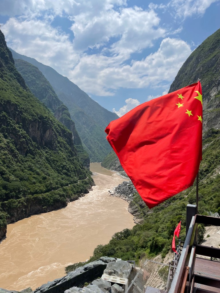 Our first stop on this part of the journey was Tiger leaping gorge. Tiger leaping gorge is a narrow canyon where the main tributary to the mighty Yangze river (长江), the Jinsha river (金沙江), forces itself through a narrow fissure. It’s an overwhelming spectacle with a torrent of water coming through the canyon. In the middle there is a boulder and according to the legend a tiger used that to jump over the gorge. That’s highly unlikely though.