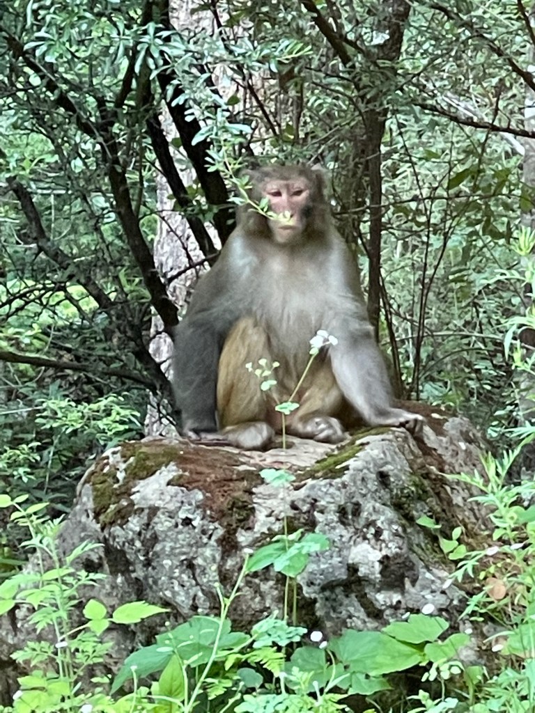 The next morning I got an early phone call from Yuwen urging me to look outside the window. We both had separate rooms but we looked out over the same patch of forest. When I looked outside I stared straight at an adult male monkey that was grooming himself and who was probably waiting for hand outs from the hotel guests. It was a gorgeous and unexpected sight.