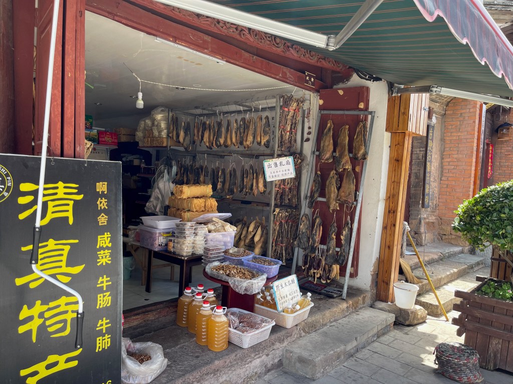That afternoon Yuwen and I then visited Shaxi old town. Perhaps it was the relief that everything was over now, but Shaxi was by far the best old town we visited. Shaxi is a small town with many of its old buildings still intact and most important it is not overdeveloped or touristy. What also helped was that we ran into the proprietor of Peter’s kitchen. Peter serves draft beer, which I like, and we struck up a conversation. He runs a small western style food restaurant and small B&B in Shaxi. He decided to get into a new line of business after his import-export business in Beijing got to a virtual standstill during COVID. He is originally from Canada, and he lived in Europe and Costa Rica where he also ran a restaurant. Peter was very friendly, talkative and even showed us to his favorite local restaurant in town despite the fact that he had his own business to run. I love these chance encounters and I especially love people that keep reinventing themselves and take life in their stride.