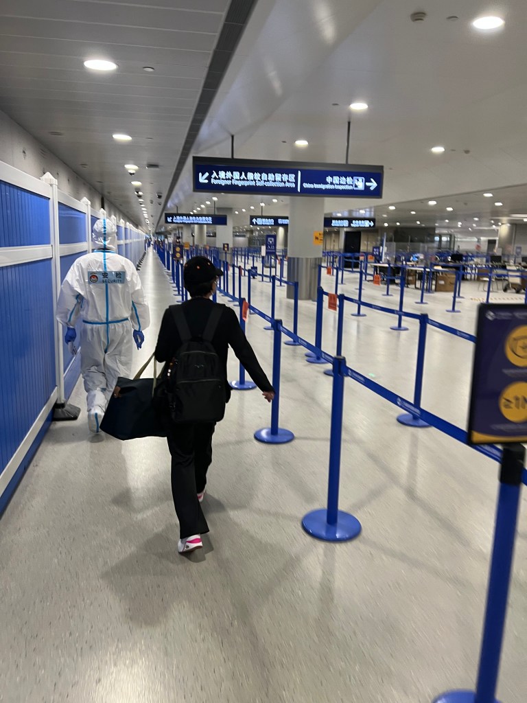 The longest wait in the airport is for the shuttle that takes you to your hotel. Last time it took many hours, and I didn’t get to my hotel until 3am, this time it went faster. Our plane arrived around 3:15pm, we deplaned around 4pm, and I got to the hotel shuttle counter for Pudong around 4:25pm. Then the wait started but I was prepared for it. Eventually we got the signal to board our shuttle around 7:30pm. It then still took a one-and-a-half-hour shuttle ride to drop me off at my hotel and that included making frequent stops at other quarantine hotels before we got to mine. The entrance at the hotel is as you would expect, everyone is dressed up in hazmat suits and after you scan your QR code and get your passport back you are taken to your room.
