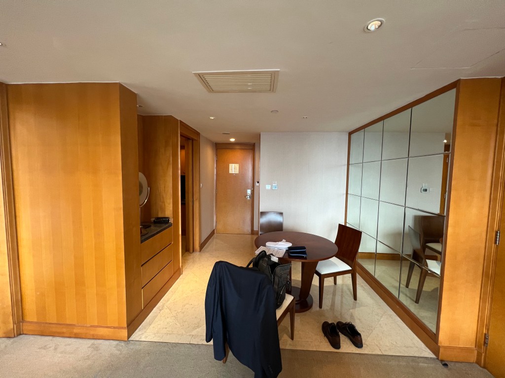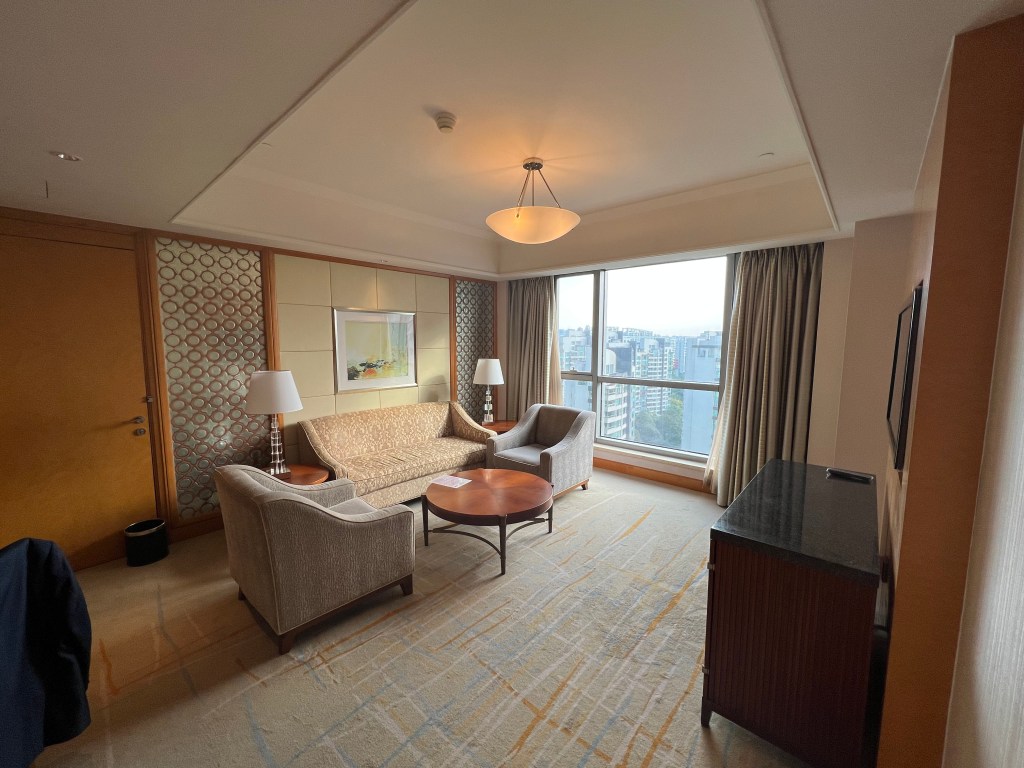 Like last time, I had arranged for a special quarantine hotel. This time I got a suite in the Hilton Double Tree in Pudong. This is more expensive but well worth it because it feels less like a prison. I used the living room area for work calls in the morning, the dining room area for eating and the bed is there for sleeping. It brings a little more structure to things and having dedicated functional areas keeps me sane.