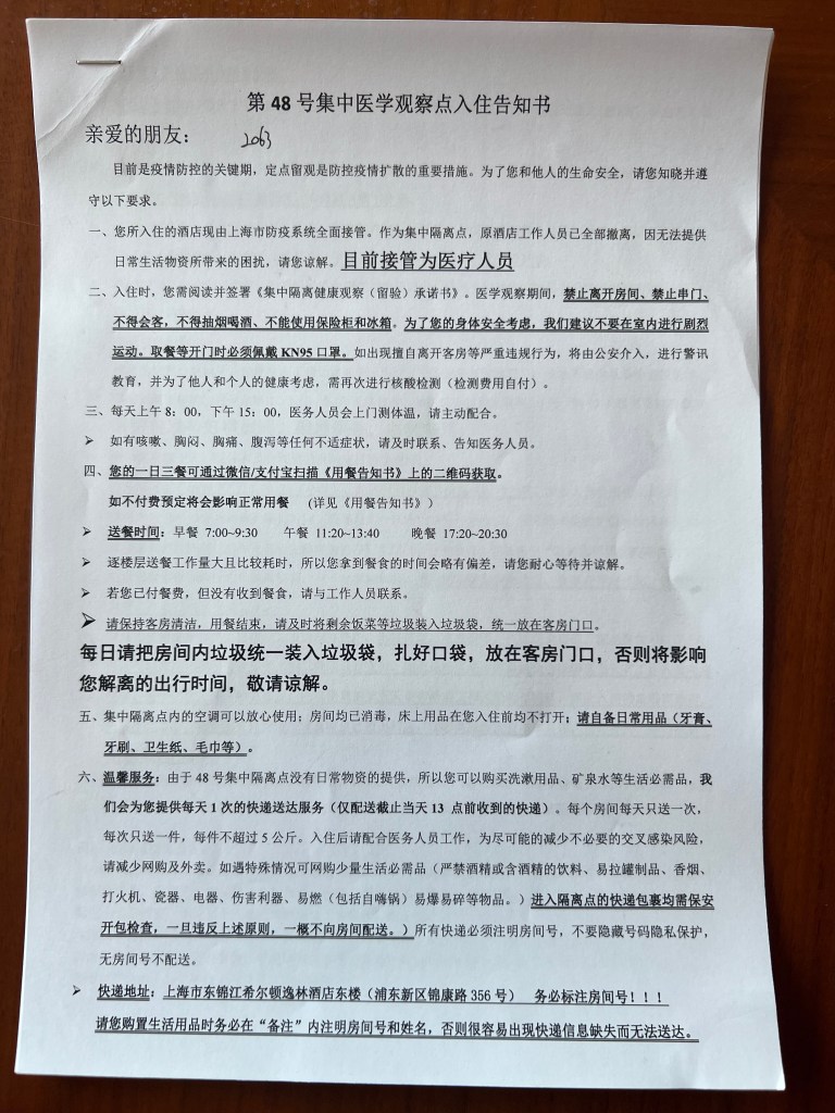 At 1am I was brutely woken up by a buzzing hotel telephone. It was the operator, and I was told that I was free to go. Of course, I wasn’t ready, I didn’t have a driver waiting nor did I have a hotel reservation. This was all planned for Monday. After some back and forth the operator agreed that I can leave at 8am the next day, Sunday. I then checked my health code, but it was still red. A red health code makes you essentially persona non-grata so clearly the COVID tracking systems hadn’t kept up with the new regulations.