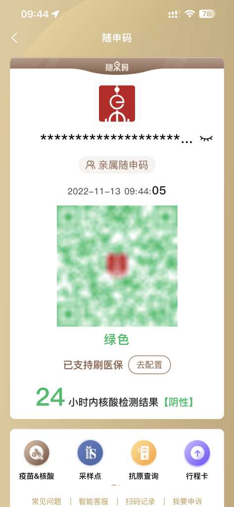 In the Alipay app you can retrieve your health code and get a list of your COVID test results.