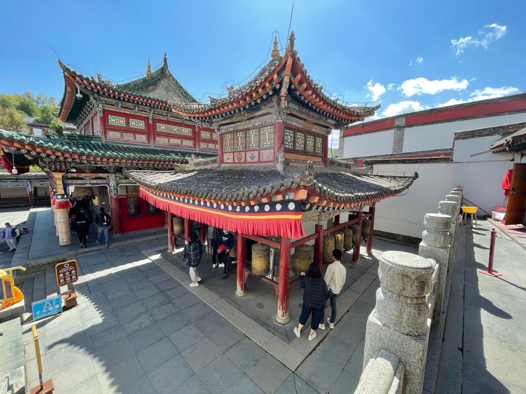 Shangri-La old town was a surprisingly nice place. It too was burned down recently after a major fire (2014) and fully restored. I was surprised about the number of westerners I saw walking around. Not just young couples, but also families with kids. I suspect these folks were all living in China already because otherwise its hard to get here. Probably because of these foreigners, Shangri-La had a decent share of pubs and local microbreweries which I obviously had to sample. After a nice local dinner we visited the temple complex that was downtown near its central square.