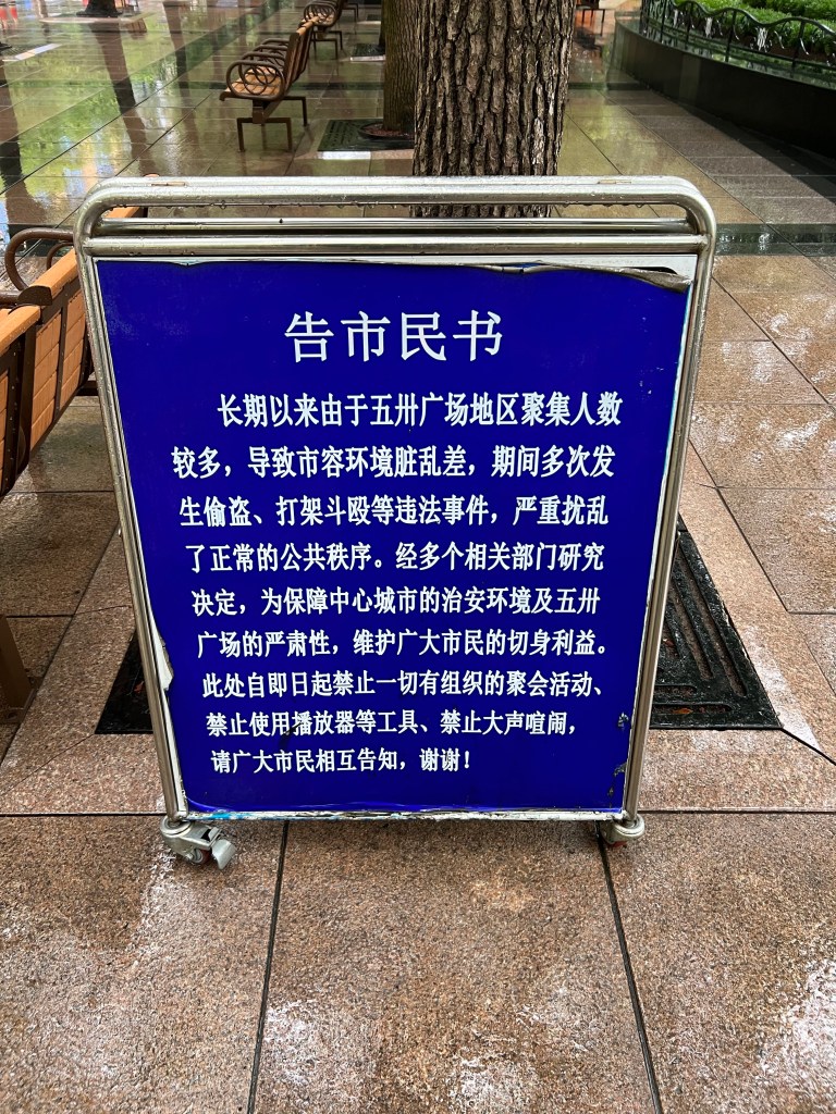 Signs on people square, the site of Sunday’s vigil, prohibiting the gathering of groups of people. For obvious reasons, I didn’t photograph the heavy police presence here.Police presence at every corner in Xīntiāndì.