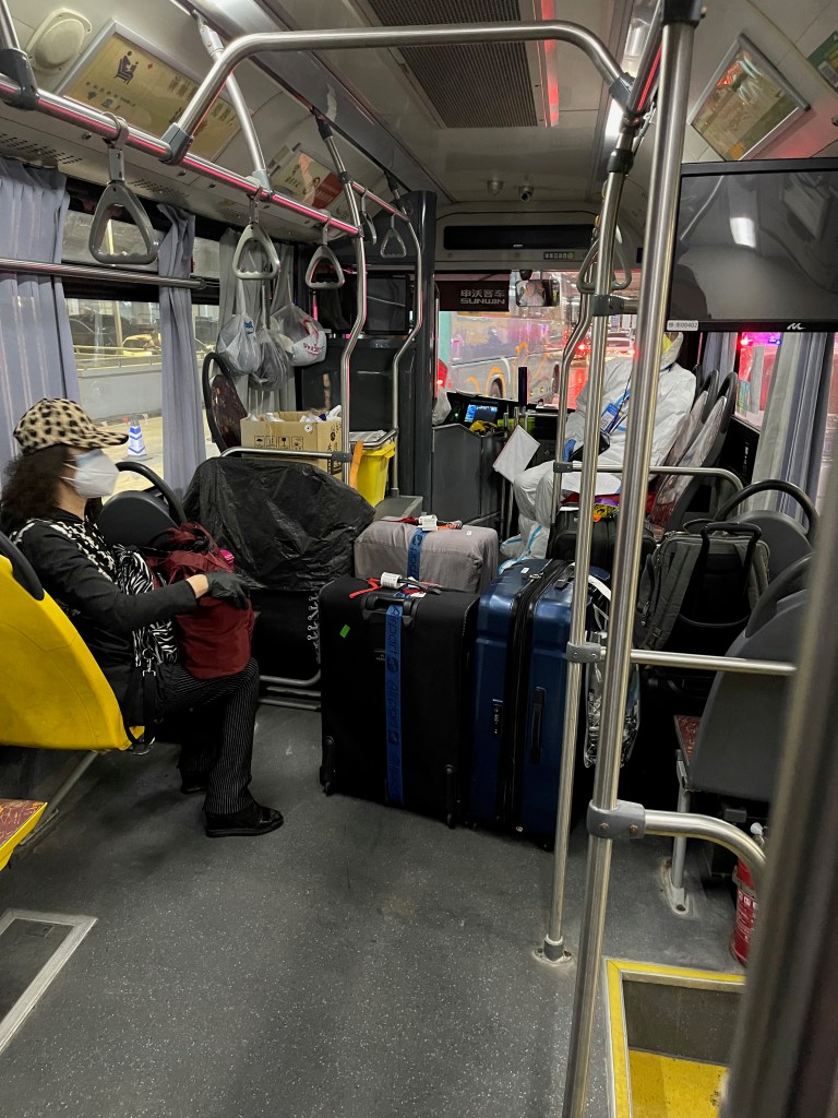 Further down the hallway I did find the signs pointing to Shanghai and eventually I found the helpdesk. The police officer behind the desk spoke very little English which was a bit problematic later on. At this point though she asked for my passport and QR code. She was processing this for minutes and I got a bit worried that I would end up at a different place. I tried to ask her what was going on and all she said in heavily Chinese accented English: “I know who you are”. That sounded sinister enough to me, and I decided to call my Chinese colleague to help with the translation. It turned out I was already in the system and all I had to do was sit on the bench and wait for the shuttle to show up. It was going to arrive soon. At this point it was 8:30pm.