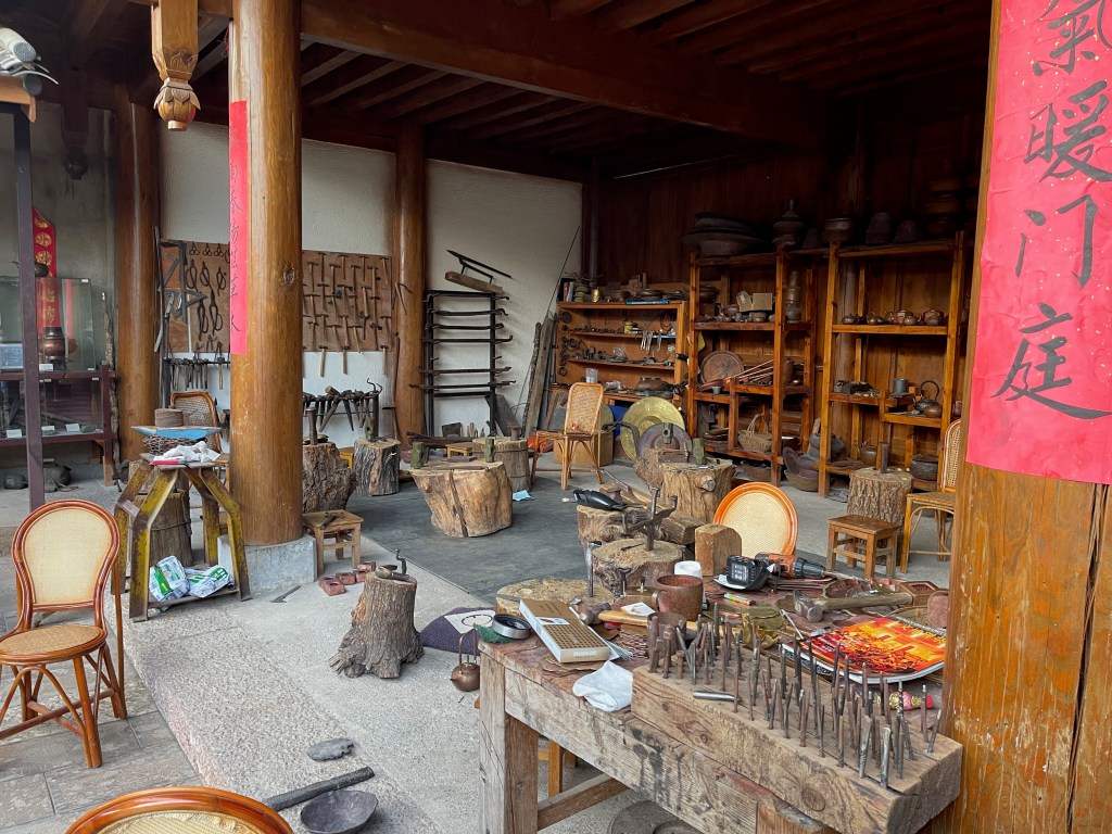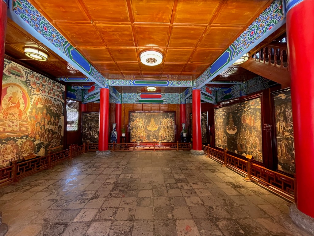 Of all the towns we had visited so far, the best was our next stop in Baisha old town (白沙古城). Baisha was on the Tea horse trading route as well as the ancient southern silk trading route. Baisha was known for its silk embroidery, a skill that’s still being practiced in the city today. The city also hosts a sizable temple complex with gorgeous Buddhist murals, although most of it was under reconstruction when we visited the site.