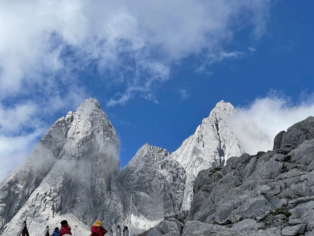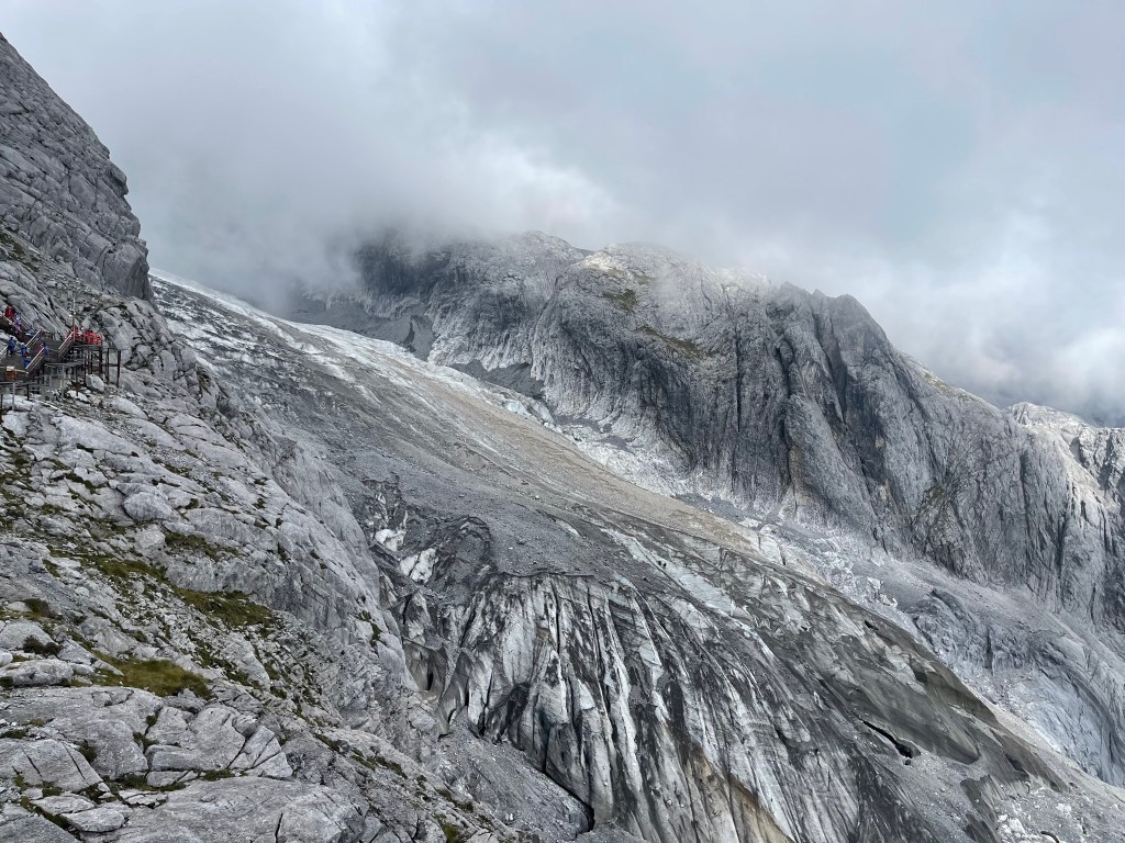 The next morning we had a trip planned to Yulong snow mountain (玉龙雪山) or better known by its English name: Jade Dragon snow mountain. We took a cable cart up the mountain and there we climbed up to the top to see its glacier and its jagged peaks at 4576m. It’s a good thing we started early because soon the clouds set in and covered the summit obscuring it’s views.