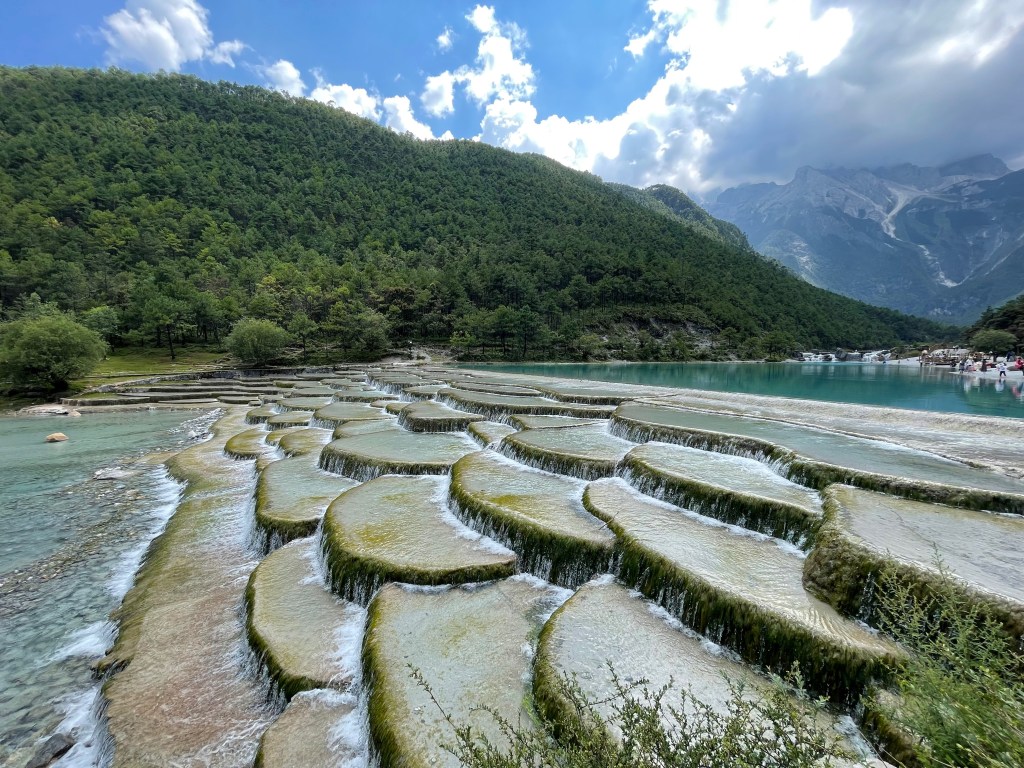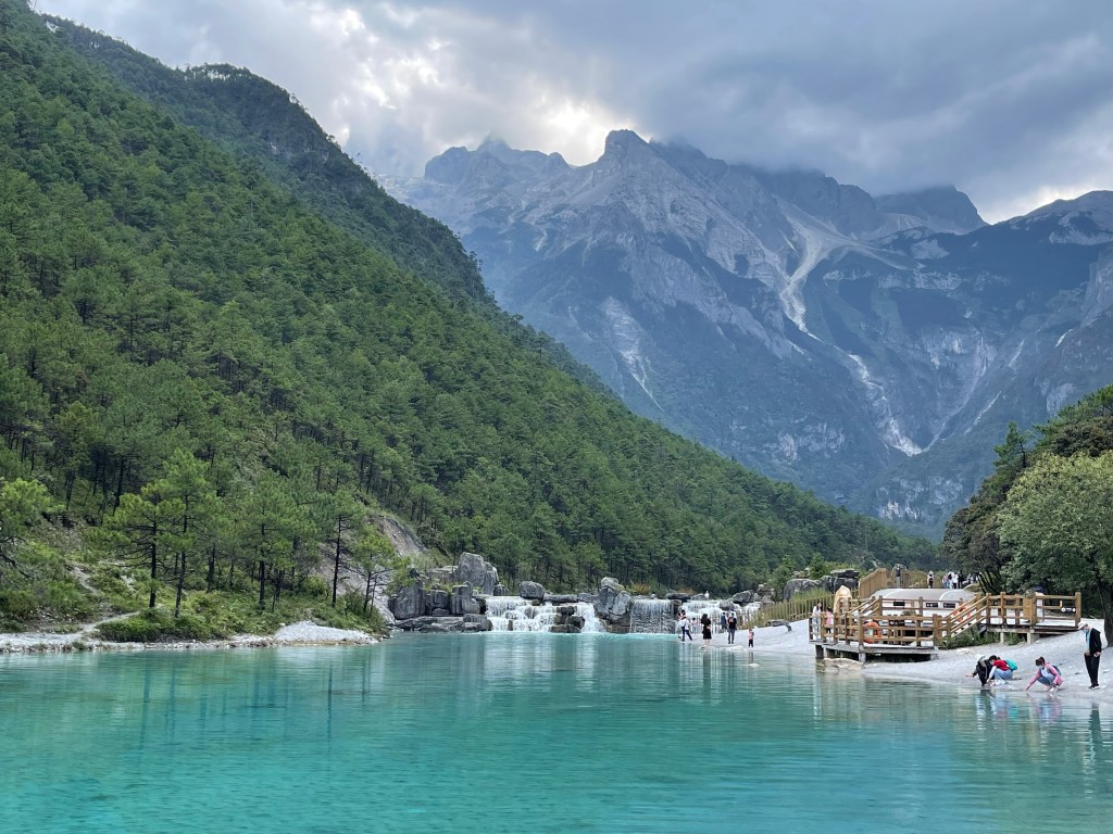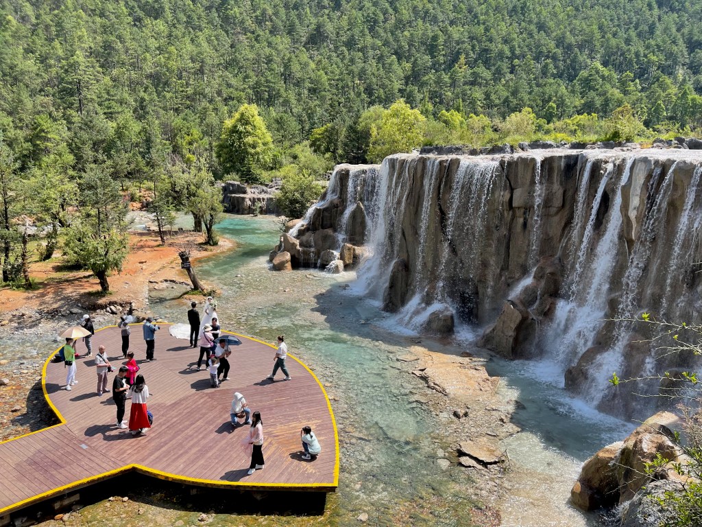 The next stop was a beautiful turquoise glacier run off lake at the bottom of Yulong mountain. It provided a stunning backdrop with lush green forests and snowy peaks in the distance. Consequently, it was a popular place for wedding pictures. I’ve never seen that many prospective couples together. I’m using this word prospective, because apparently the custom in China is to take the wedding pictures before the wedding so you can use it in your invitation.